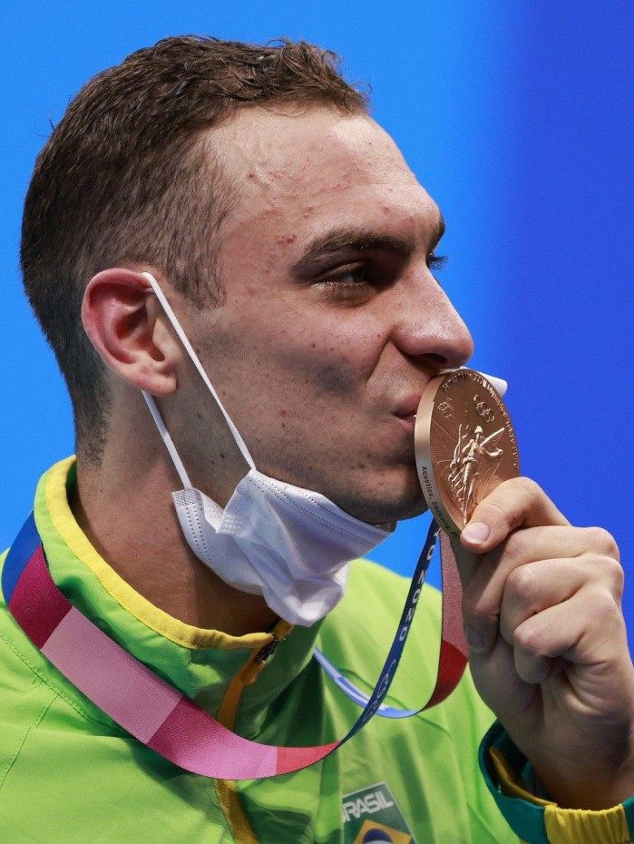 Tóquio - Primeiro brasileiro a a garantir classificação para uma final individual da natação nas Olimpíadas de Tóquio, o gaúcho Fernando Scheffer, com o bronze, foi o primeiro a conquistar medalha para o Brasil na piscina do Centro Aquático de Tóquio, na decisão dos 200m livres, na noite desta segunda-feira, com o tempo de 1min44s66. Tom Dean e Duncan Scott, do Reino Unido, terminaram em primeiro e segundo, respectivamente.