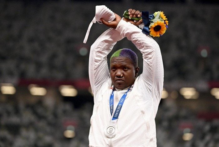 Tóquio - Na terra do anime e do manga, desenhos animados e quadrinhos, o estilo de Raven Saunders, mais conhecida como 'Mulher-Hulk', fez sucesso no Japão. E não apenas pela personalidade do visual, com cabelo tingido e máscara de personagens da DC Comics e Marvel. Medalhista de prata no arremesso de peso nas Olimpíadas de Tóquio, a atleta, de 25 anos, que é negra e gay, fez manifestação durante a premiação.