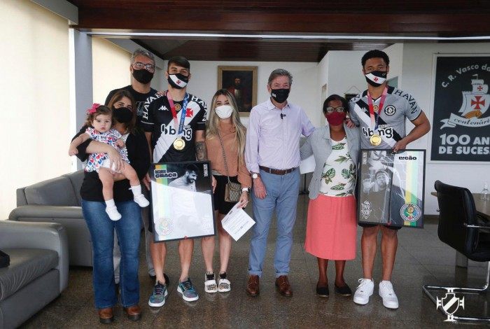 Junto dos familiares, os jovens crias da Colina receberam um quadro comemorativo, uma carta de agradecimento e uma camisa com patch personalizado, igual ao utilizado pelo Vasco na vitória por 1 a 0 sobre o Vila Nova, pelo Brasileirão.