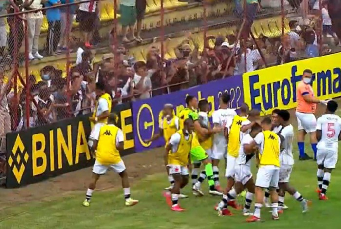 Jogadores do Vasco comemoram a classificação para o mata-mata da Copinha com a torcidaReprodução/SporTV
