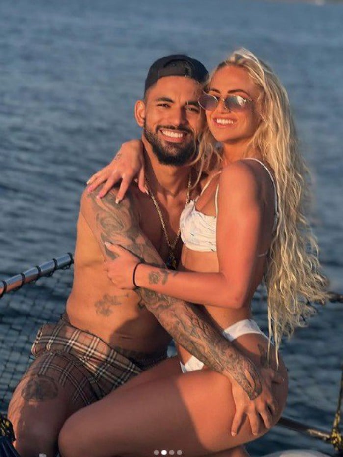Douglas Luiz e Alisha Lehmann assumiram romance no início do ano e vem conquistando o coração dos fãs com as fotos que postam nas redes sociais. Atualmente, o casal é muito conhecido e admirado na Inglaterra e no Brasil.