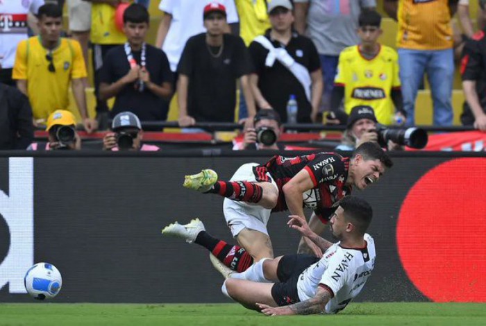 Pedro Henrique foi expulso na final da Libertadores após entrada dura em Ayrton LucasAFP