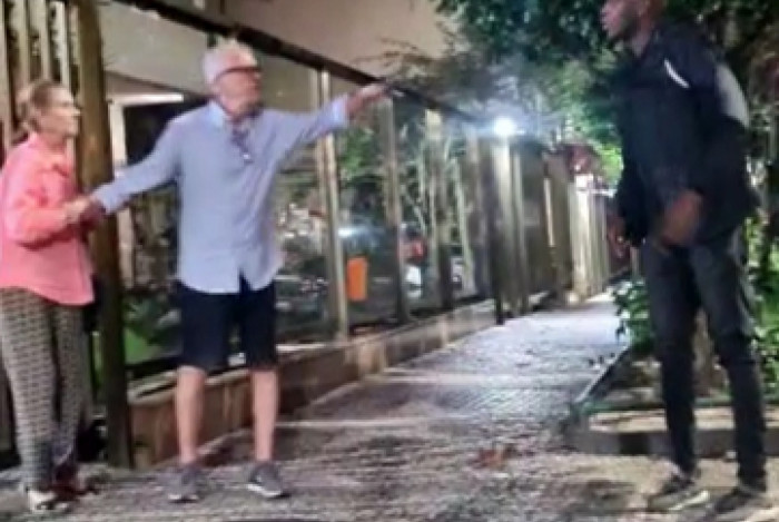 Em outro vídeo, o filho do idoso, também morador, aparece reclamando da presença de Lucas enquanto pedestres reprovam a atitude do homem, o chamando de racista.
