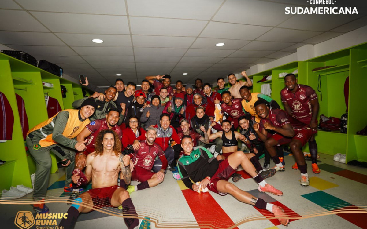 Comemoração do Mushuc Runa após garantir o primeiro lugar do Grupo EDivulgação/X @ClubMushucRuna1