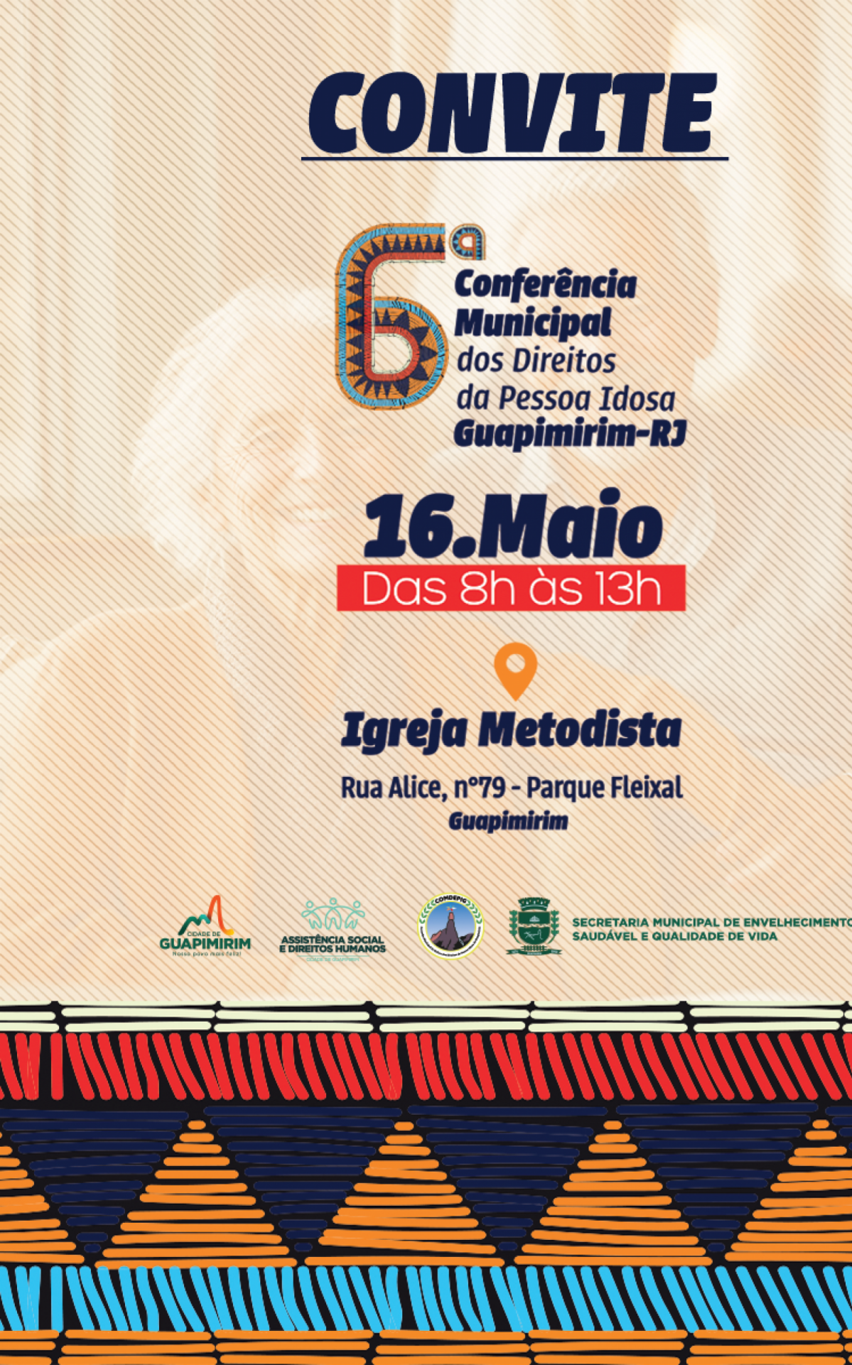 A Prefeitura de Guapimirim, através da Secretaria Municipal de Envelhecimento Saudável e Qualidade de Vida e do Conselho Municipal da Pessoa Idosa, promovem no próximo dia 16 de maio, a 6ª Conferência Municipal dos Direitos da Pessoa Idosa, com o objetivo de debater políticas públicas de proteção e valorização da pessoa idosa no município.