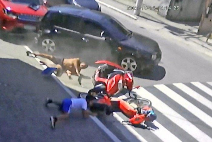 Imagens de câmeras de segurança da via registraram o momento do acidente. No vídeo publicado na página Piabetá da Deprê é possível ver que um carro atinge outro e depois bate na moto e na bicicleta. Um dos carros passa por cima de Humberto, que conduzia a bicicleta. Confira as imagens.