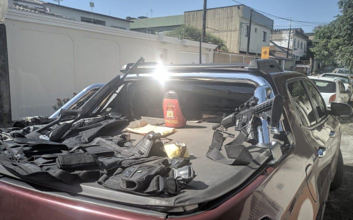 No local, os policiais descobriram que o carro estava com o inquilino de uma quitinete na mesma rua. Eles foram à residência e tiveram permissão para entrar. Na abordagem no interior da casa, os policiais encontraram outros materiais: uma espingarda de chumbinho, capa de colete, algema coldre de perna, casaco camuflado, capa da espingarda, e um relógio de pulso.