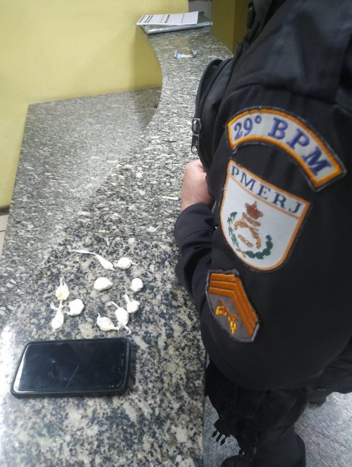 Porciúncula - Um jovem de 23 anos foi preso em flagrante por tráfico de drogas, no Centro de Porciúncula, no Noroeste Fluminense. Policiais do 29° BPM (Itaperuna-RJ) que atuam na 3ª Cia em patrulhamento de rotina pela Rua Deputado Carlos Pinto Filho perceberam que o suspeito havia cuspido algo. Foi dada ordem de parada, mas ele não obedeceu. Houve perseguição; o jovem acabou sendo alcançado e detido. O rapaz engasgou e os agentes tentaram fazer com que ele entregasse o que estava na boca, mas acabou engolindo.