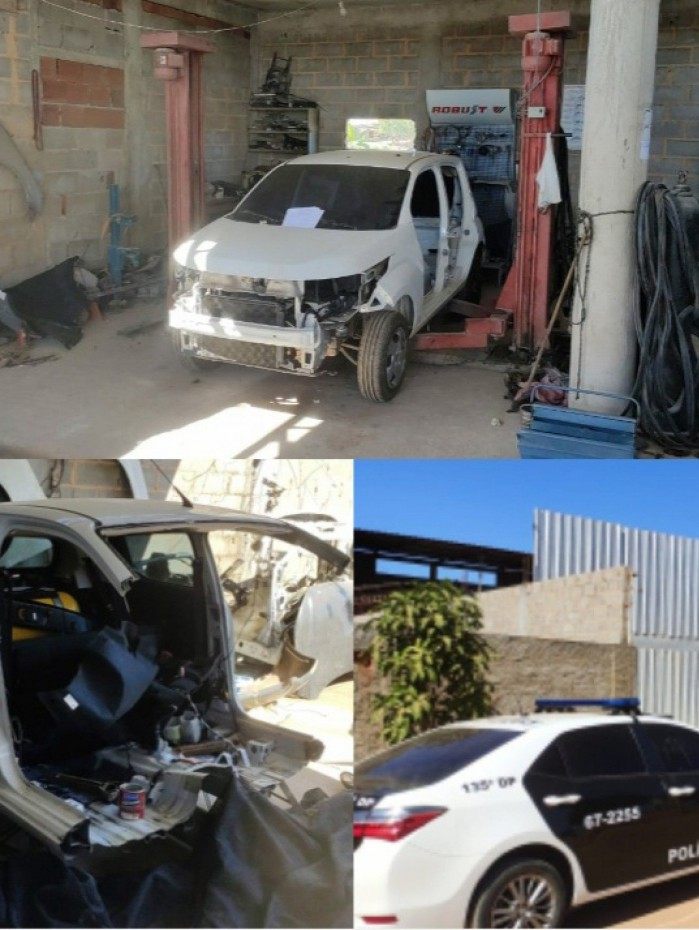 Notas fiscais dos automóveis que estavam parcialmente desmanchados foram apresentadas à Polícia Civil, sendo estas de compras feitas em leilões. No interior do local foram encontrados também alguns carros com placa e sem documentos que, de acordo com o dono do imóvel, seriam de clientes para realização de serviços, porém ao ser realizada pesquisa ao Infoseg (Rede de Integração Nacional de Informações de Segurança Pública e Justiça) foi verificado que um Fiat Mobi, cor branca, sem placa de identificação e parcialmente desmanchado, constava como furtado há três meses. O suspeito teria dito que sabia que o veículo possuía algum “problema”, mas não saberia apontar qual. Ele não quis dizer como teria adquirido o automóvel, mas teria dito que um outro carro parecido seria montado com as peças do que estava com "problema". Diante de um objeto de furto no local e a possível confissão de que este seria desmanchado foi dada voz de prisão aos dono da oficina. Peritos estiveram no estabelecimento para confecção do respectivo laudo. Enquanto era realizada busca no interior da loja, uma pessoa teria retirado uma caminhonete Fiat Strada, de cor branca que estava dentro do terreno com os demais carros parcialmente desmanchados. Foi realizada uma busca no bairro e adjacências, mas a caminhonete não foi encontrada até o fechamneto desta publicação.