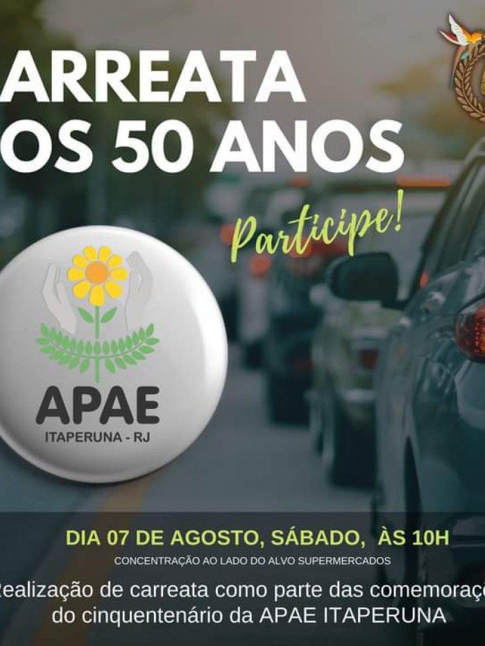 Carreata acontecerá no próximo sábado, 07, com concentração às 9h, em frente ao Alvo Atacadista.Foto: divulgação/APAE