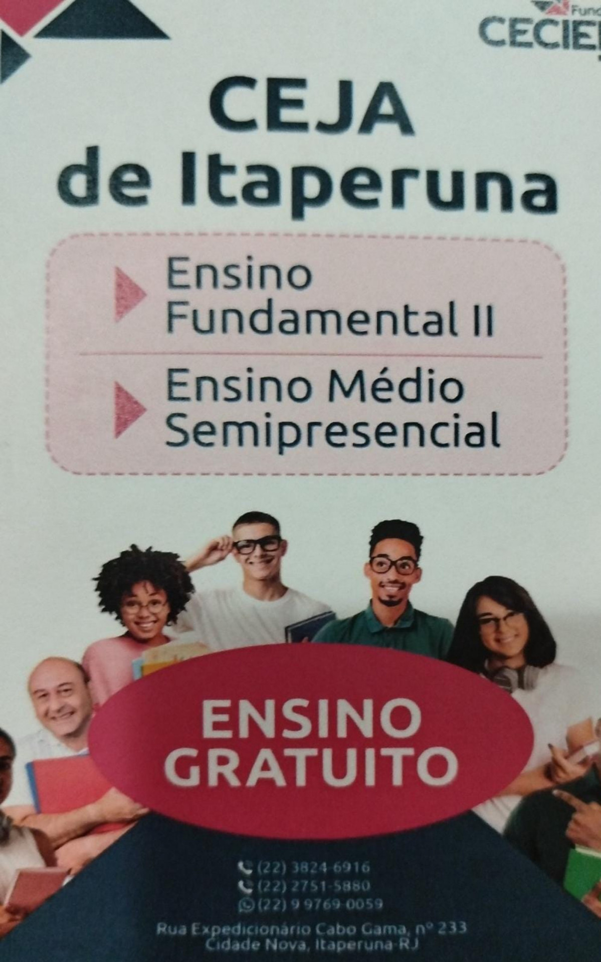 Interessados podem entrar em contato pelos números 22-3824-6916, 22- 2751-5880 ou 22-997690059. CEJA fica na Rua Expedicionário Cabo Gama, nº 233, Cidade Nova, Itaperuna.