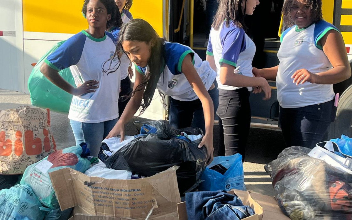 Peças arrecadadas durante o Arraiá solidário da escola foram levadas a abrigos da cidade pelos próprios estudantes