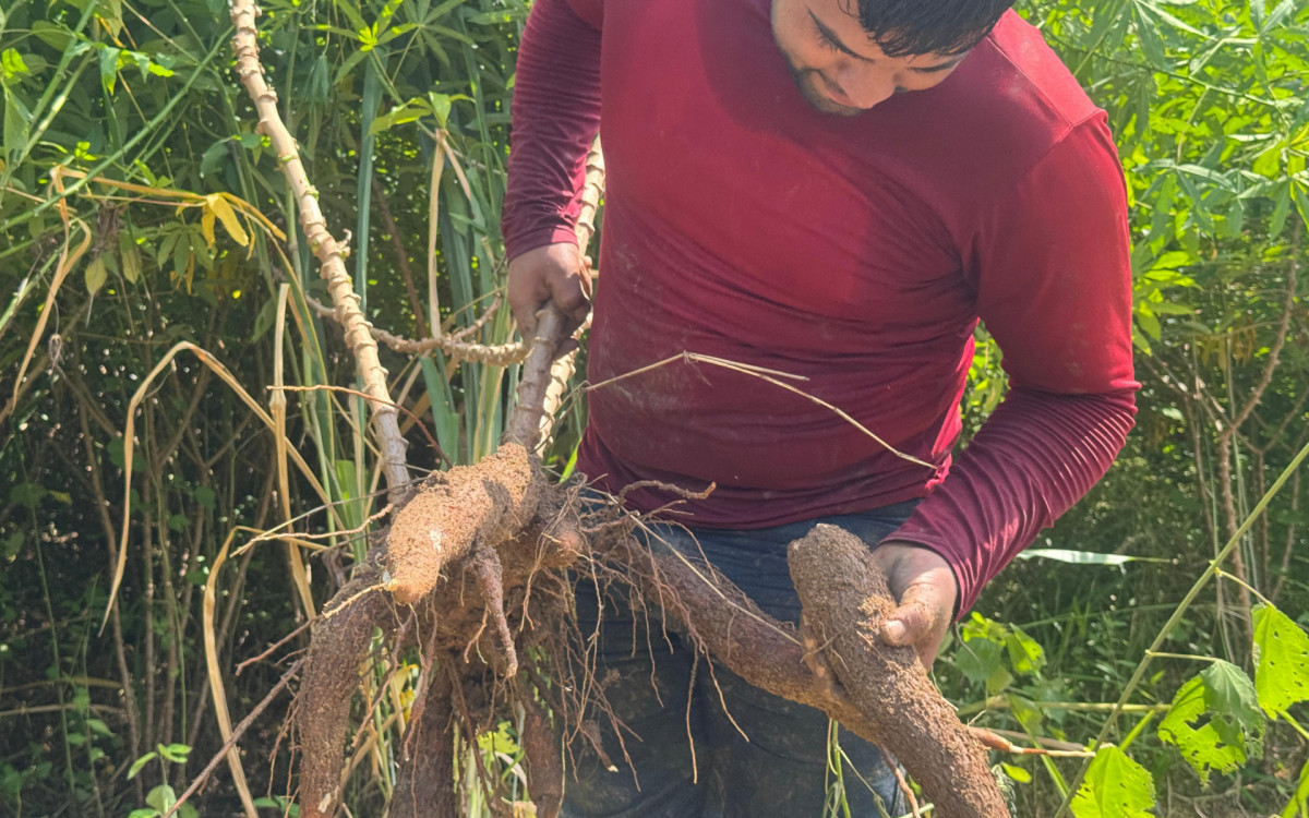 O cultivo do aipim exige paciência: são cerca de nove a dez meses entre o plantio e a colheita. Segundo os produtores, o clima está entre os principais desafios. “Nem muito molhado, nem muito seco. Quando chove demais, o carro não entra e dificulta tudo”, explica Joelson.
