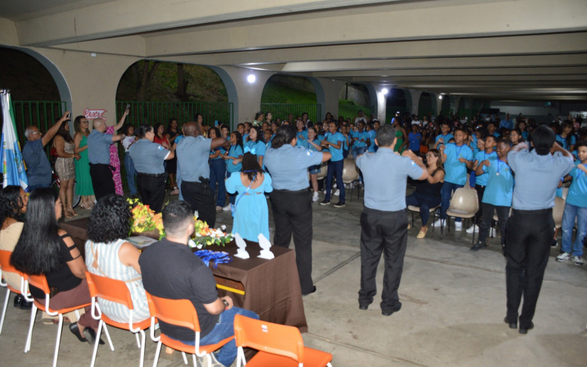 Levy Gasparian - Na noite da última quinta-feira (5), o Ciep Padre Joaquim Chaves de Figueiredo sediou a solenidade de formatura dos alunos do Programa Educacional de Resistência às Drogas (Proerd) das escolas municipais de Comendador Levy Gasparian.