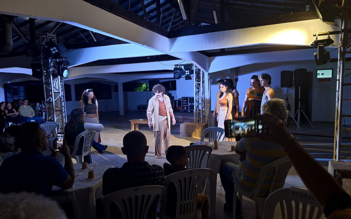 A peça de abertura, “Café com Verdade”, reuniu nove jovens em uma narrativa que mistura realidade e ficção dentro de uma cafeteria abandonada. O enredo explora o cotidiano, os desafios pessoais e o valor da escuta, com o café como elemento simbólico que estimula confissões e reflexões. O texto é de criação coletiva e a direção é da atriz e professora Cláudia Byspo, da Escola Municipal de Artes Maria José Guedes.