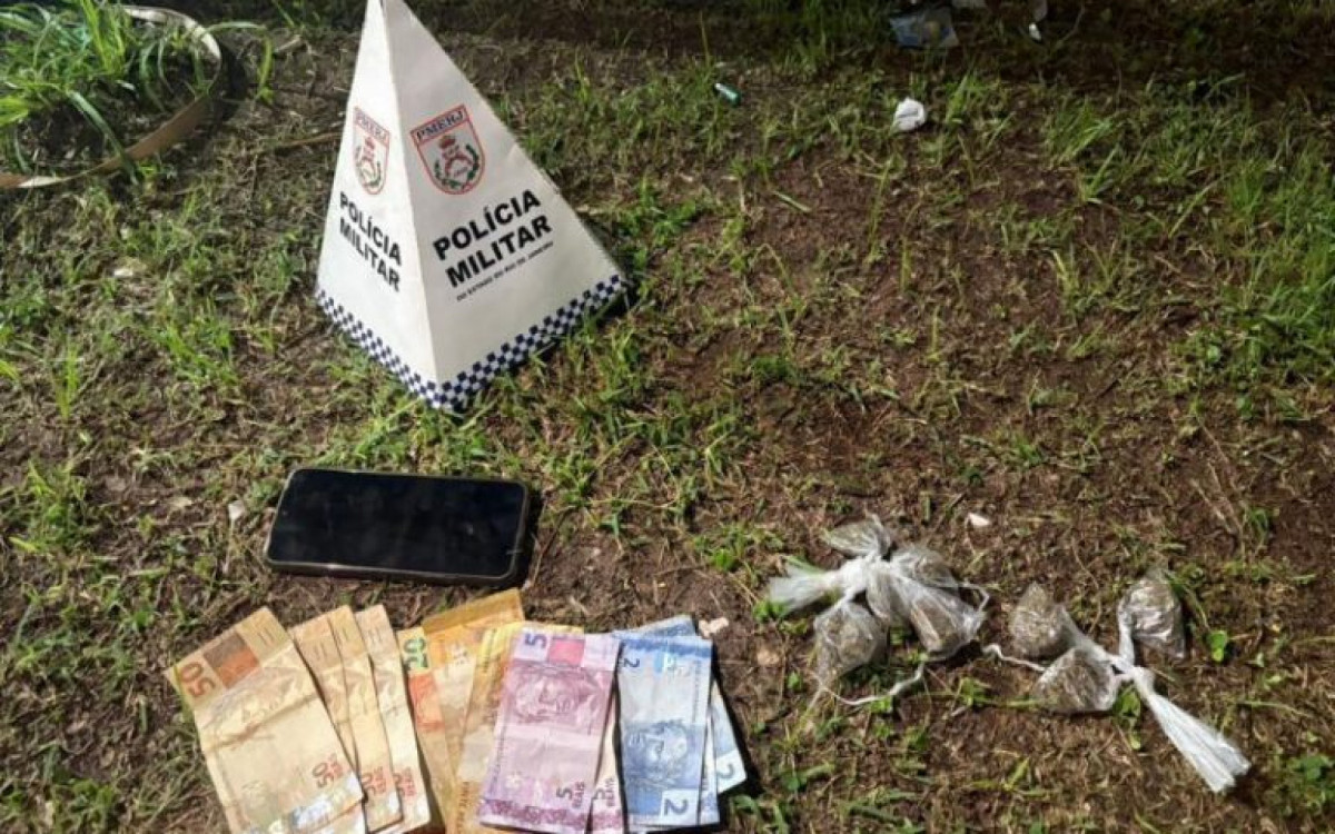 A revista na área levou os agentes até o objeto abandonado. Dentro da sacola estavam nove sacolés de maconha, 328 reais em dinheiro e um telefone celular. Durante a identificação dos envolvidos, os policiais também constataram que o homem que estava na garupa utilizava tornozeleira eletrônica por condenação anterior relacionada ao tráfico de drogas.
