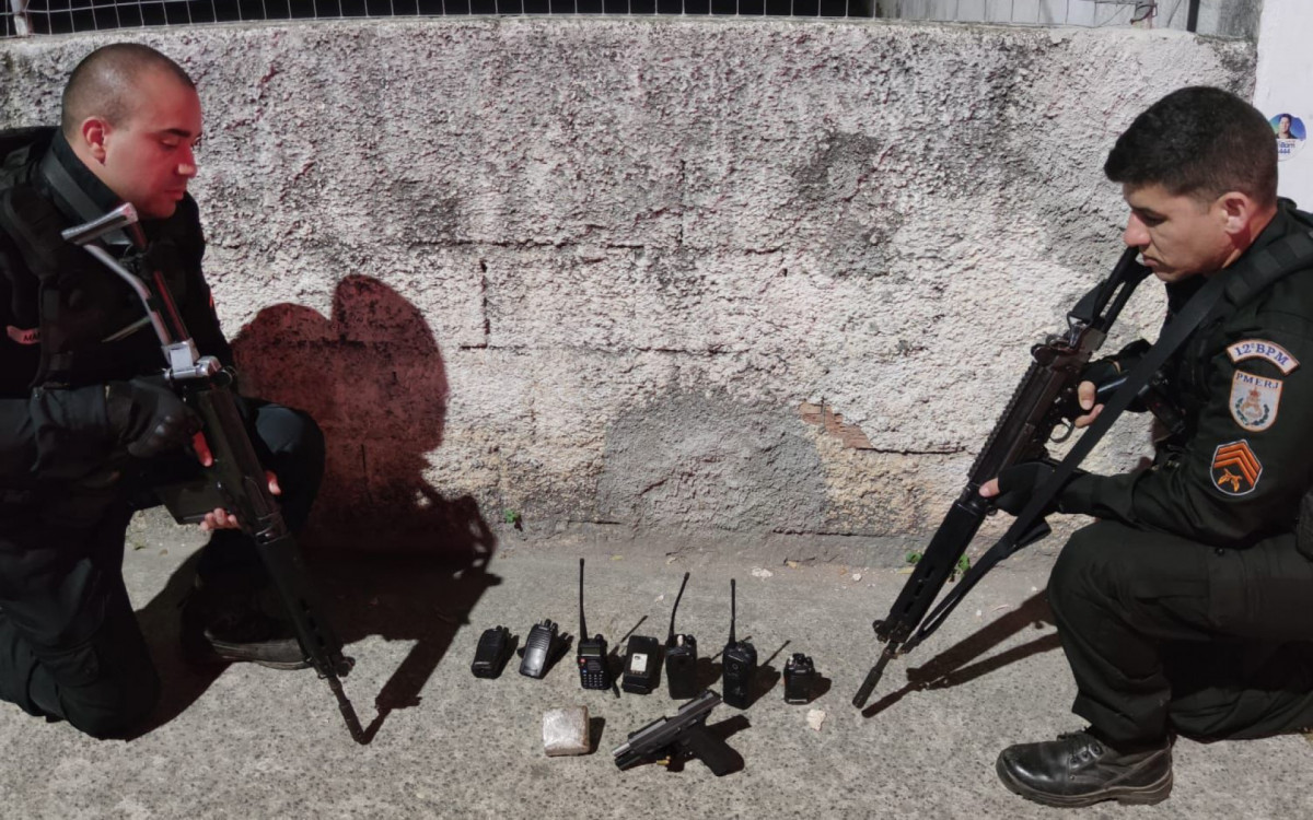 Com eles foram apreendidos armas, munições, 06 rádios transmissores, 1 motocicleta e uma grande quantidade de drogas.