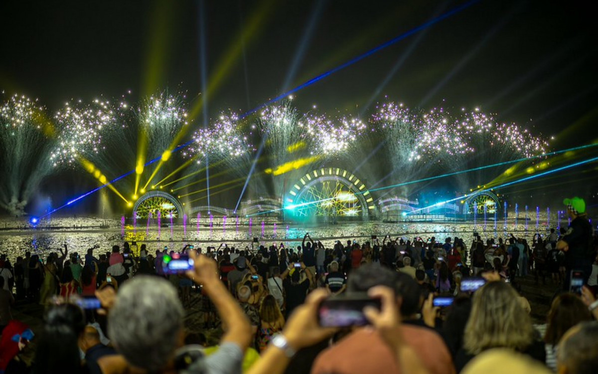 Em seguida, o público acompanhou o “Águas Dançantes”, espetáculo que transformou a lagoa em cenário cênico com combinações de luz, música, jatos d’água e efeitos visuais. Moradora do Parque Nanci, a professora Carla Menezes contou que todo ano assiste ao espetáculo, mas que ficou impactada com o show deste ano.