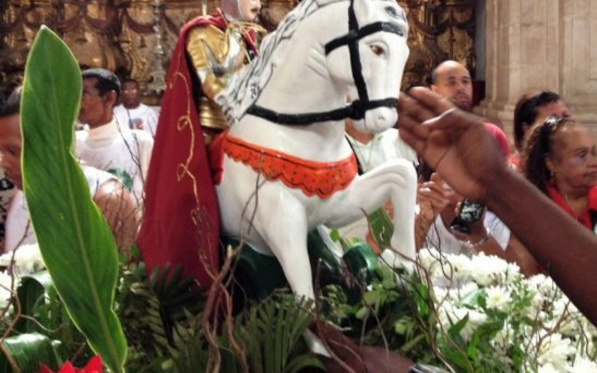 A programação começa às 6h com a tradicional Alvorada, seguida de café da manhã comunitário às 6h30 e missa campal às 8h em homenagem ao santo guerreiro.