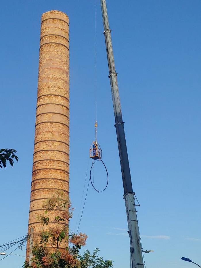 Ainda segundo a pasta, a área foi isolada, reduzindo o risco de acidentes no local. Desde então, equipes municipais de Obras e da Defesa Civil acompanham o trabalho de demolição da chaminé.