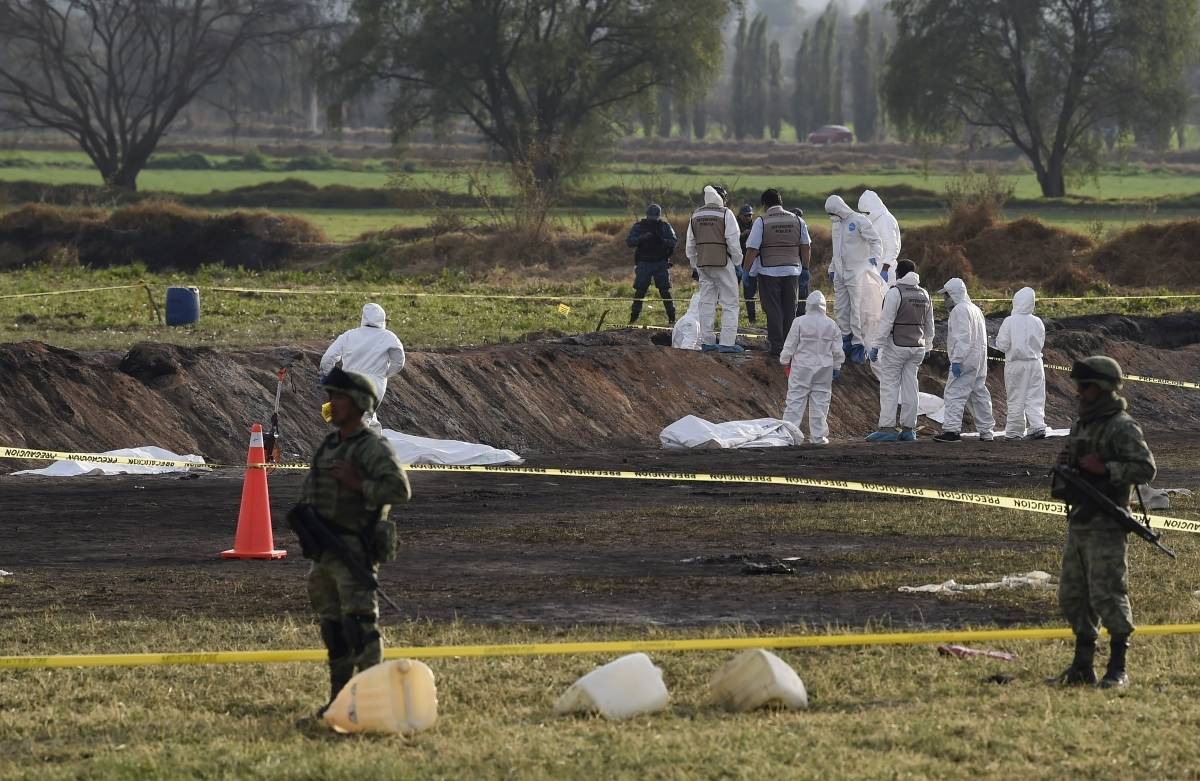 A explosão ocorreu na noite de sexta-feira na comunidade de Tlahuelilpan, na localidade de Hidalgo, a cerca de 120 km da capital, depois de que traficantes de combustível perfuraram um duto e cerca de 700 pessoas se lançaram para roubar gasolina. O incêndio subsequente foi extinto pouco antes da meia-noite de sábado.