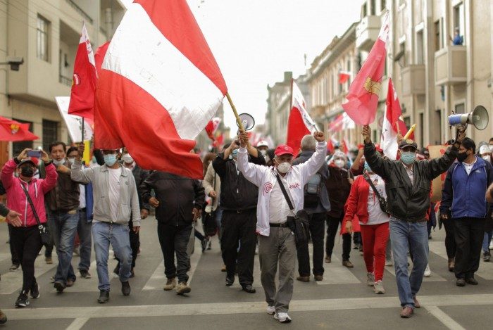 Coletivos civis e partidos de esquerda convocaram uma Grande Marcha Nacional em defesa da vitória de Castillo, que começou sob um ambiente colorido e carnavalesco no centro de Lima.