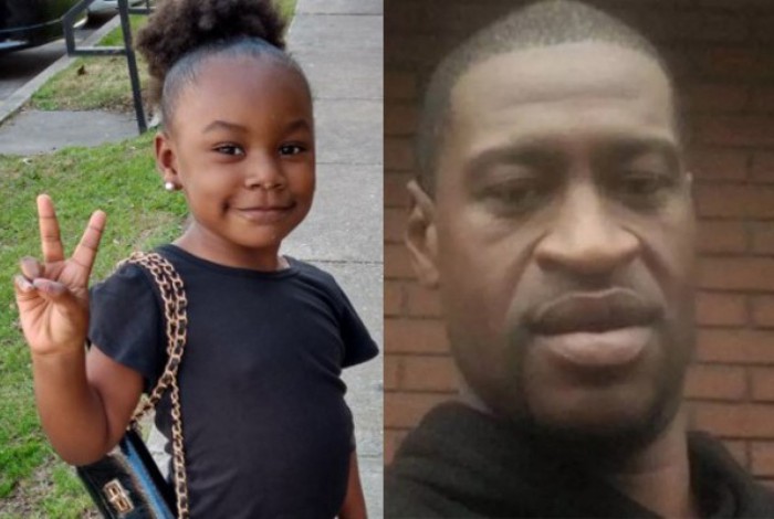 George Floyd, tio-avô da menina morreu depois que o pollicial Dereck Chauvin o imobilizou por vários minutos colocando o joelho sobre seu pescoço.