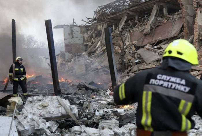 Zonas civis na cidade de Dnipro, no centro da Ucrânia, foram alvo de bombardeios russos nesta sexta-feiraAFP PHOTO / STATE EMERGENCY SERVICE OF UKRAINE / HANDOUT