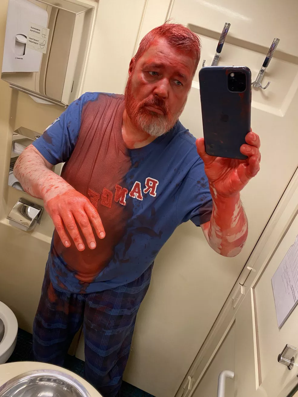 A informação do Novaya Gazeta estava acompanhada de duas fotos de Muratov: em uma delas aparentemente no banheiro do trem a cabeça, o peito e os braços cobertos com a substância vermelha.