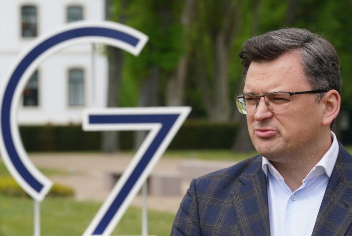 Ministro das Relações Exteriores da Ucrânia, Dmytro Kuleba, em reunião do G7MARCUS BRANDT / POOL / AFP
