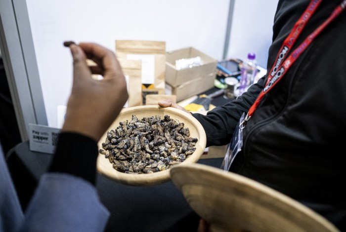 No Parque Nacional Kruger, perto da cidade onde cresceu, são consideradas uma iguaria cozida com cebola e molho de tomate. A empresária encantou clientes duvidosos com seus biscoitos e barras de proteína em uma recente feira de alimentos no distrito comercial de Sandton, em Joanesburgo.