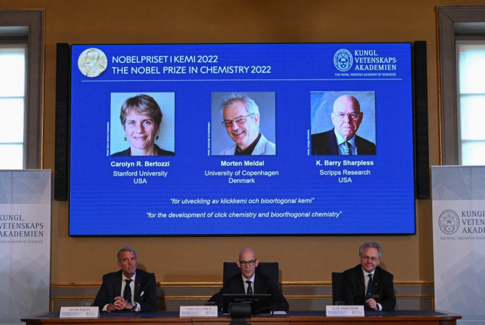 Estocolmo - O Prêmio Nobel de Química de 2022 foi confirmado nesta quarta-feira, 5, para o dinamarquês Morten Meldal e para os americanos Barry Sharpless e Carolyn Bertozz pelo estabelecimento das bases para uma forma mais funcional da disciplina científica. O trio foi reconhecido pelo "desenvolvimento da química 'click' e da química bio-ortogonal", anunciou o júri em sua decisão.
