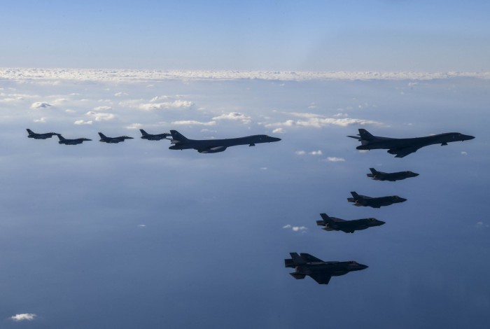 Um bombardeiro estratégico B-1B dos Estados Unidos participou hoje dos exercícios aéreos, marcando o primeiro voo de uma aeronave desse tipo na península coreana desde dezembro de 2017.