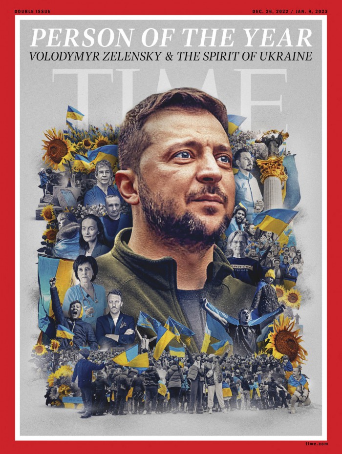 "Nas semanas seguintes ao início dos bombardeios russos, em 24 de fevereiro, sua decisão de não fugir de Kiev, mas de ficar e conseguir apoios, foi crucial. Desde sua primeira publicação de 40 segundos no Instagram em 25 de fevereiro, na qual mostrou que seu gabinete e a sociedade civil estavam intactos e em seu devido lugar, até os discursos diários pronunciados à distância para instituições, como parlamentos, o Banco Mundial e os prêmios Grammy, o presidente da Ucrânia esteve por toda parte", afirmou o editor da Time.