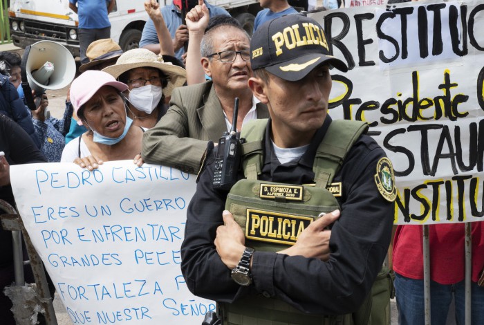 Castillo foi detido pela polícia há uma semana, após seu autogolpe fracassado e sua posterior destituição pelo Congresso, que tem um índice de rejeição de 86%, segundo as últimas pesquisas de opinião. A vice-presidente Dina Boluarte assumiu imediatamente a chefia do Estado, conforme previsto na Constituição.