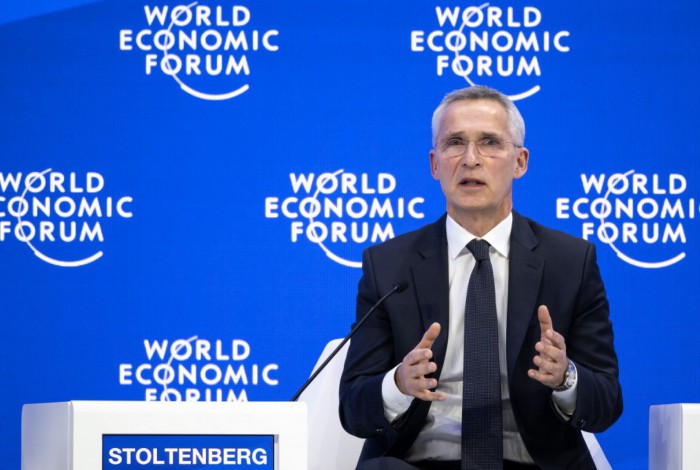 Secretário-geral da Aliança Atlântica, Jens Stoltenberg, falou durante o Fórum Econômico Mundial de Davos, na SuíçaFABRICE COFFRINI / AFP