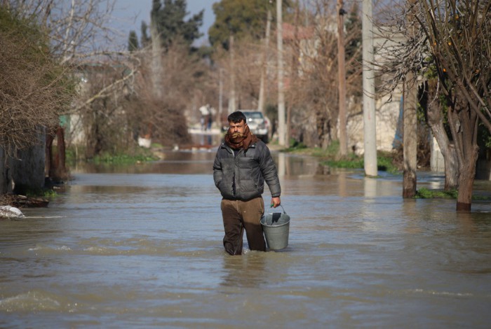 A água cobriu parcialmente casas e troncos de árvores, e plantações de trigo e de feijão ficaram completamente submersas neste povoado no norte da província de Idlib, próximo à fronteira com a Turquia.