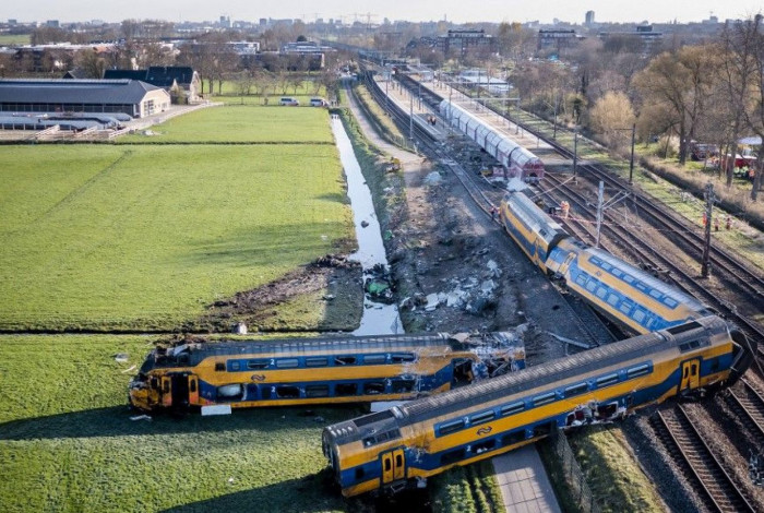 O trem transportava quase 50 pessoas, segundo as autoridades holandesas. Os serviços ferroviários holandeses geralmente realizam os trabalhos de manutenção das linhas interurbanas durante a noite.