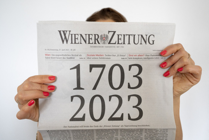 O jornal estatal Wiener Zeitung, considerado um dos mais antigos do mundo, deixará de ser vendido nas bancas austríacas a partir de julhoAFP