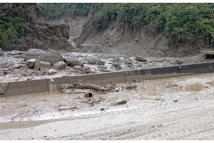 deslizamento de terra aconteceu na rodovia que liga Bogotá ao sudeste da Colômbia, perto do município de Puente QuetameAFP