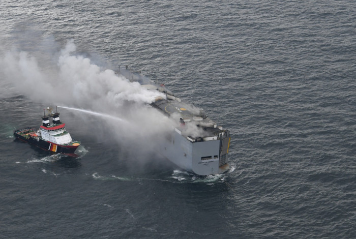 Segundo o proprietário do navio, o grupo japonês Shoei Kisen Kaisha, citado pela NOS, um dos 25 carros elétricos que o cargueiro transportava poderia ter causado o incêndio.