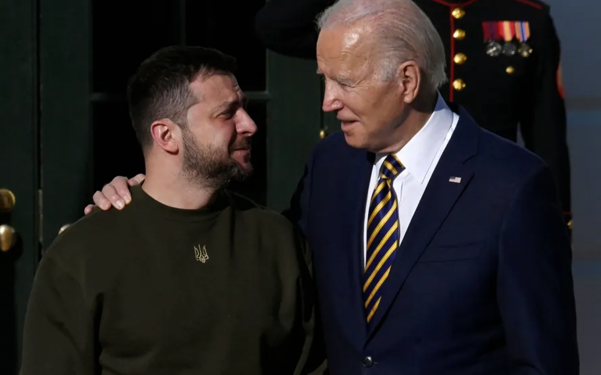 Presidente ucraniano, Volodymyr Zelensky, ao lado do presidente dos Estados Unidos, Joe BidenAFP