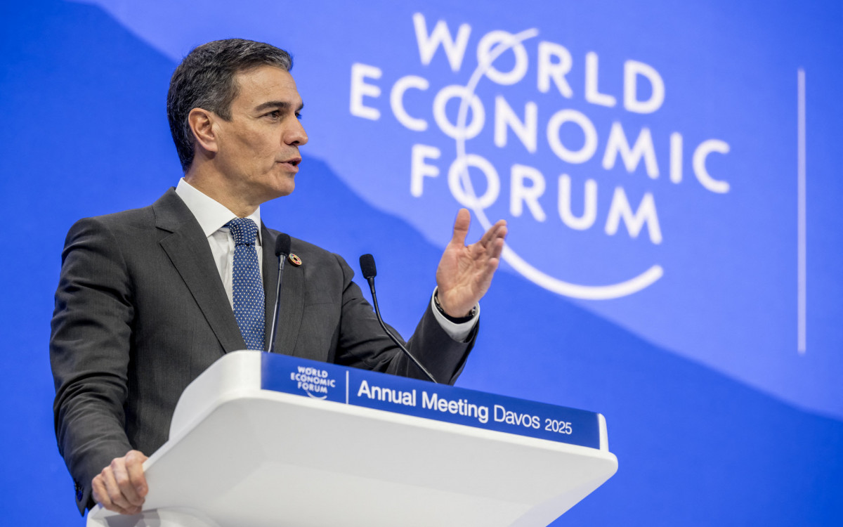 Pedro Sanchez discursa durante reunião anual do Fórum Econômico Mundial em DavosAFP