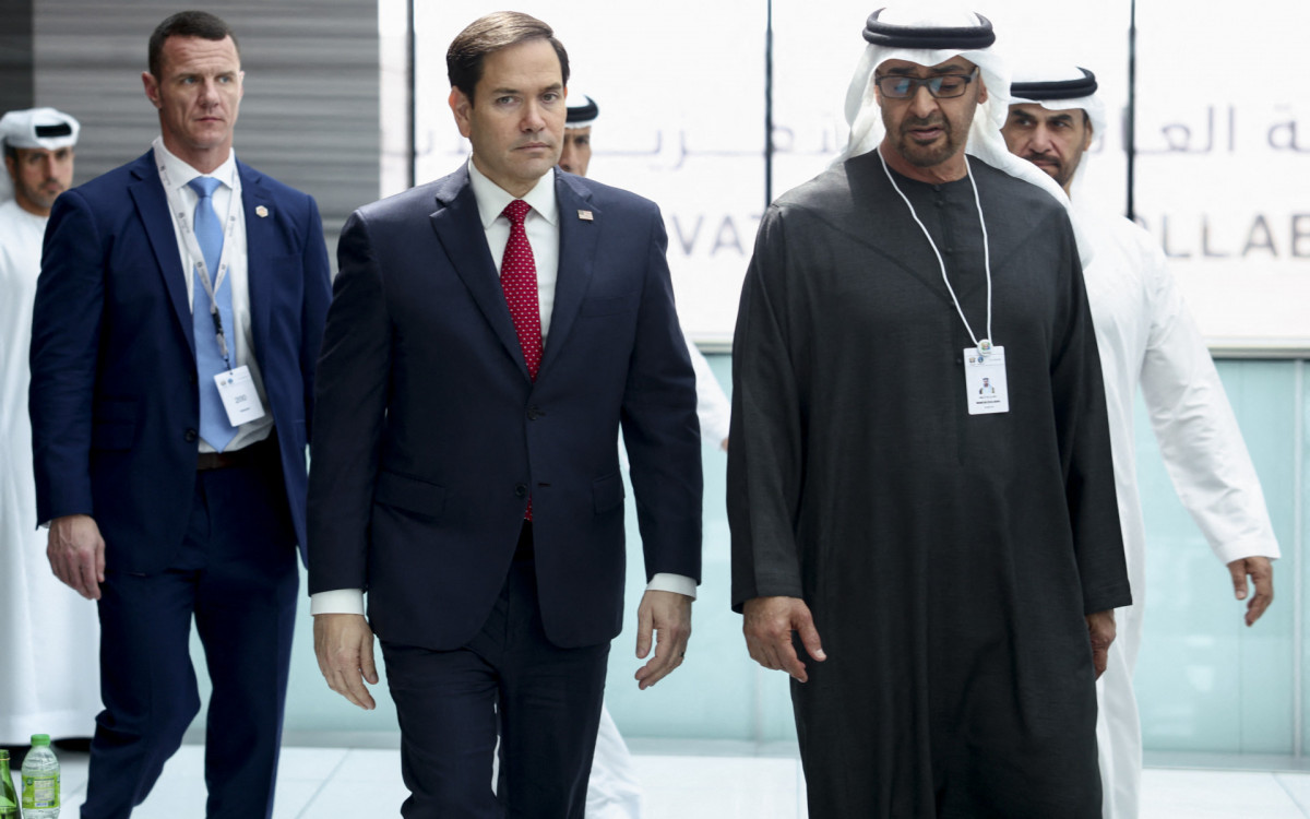 Rubio chegou de manhã a Abu Dhabi, procedente de Riade, onde, na sexta-feira, uma cúpula árabe reunirá os líderes dos seis países do Conselho de Cooperação do Golfo (CCG), além do Egito e da Jordânia, para elaborar uma resposta à ideia de Donald Trump para Gaza.