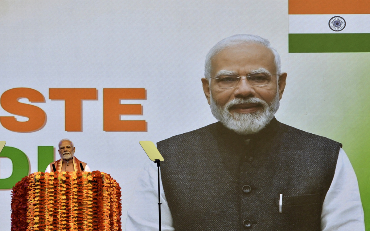 "Neste exato momento, um astronauta indiano está a bordo da Estação Espacial Internacional. Estamos trabalhando em uma missão espacial tripulada. Em breve, um indiano vai caminhar na Lua e a Índia terá sua própria estação espacial", afirmou Modi.