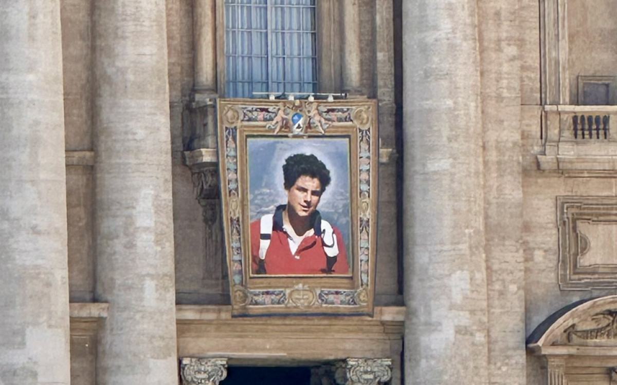 O Vaticano exibiu nesta quinta-feira (4), na Praça São Pedro, uma foto gigante de Carlo Acutis, que será canonizado no próximo domingo (7). O jovem é o primeiro santo da geração millenium.