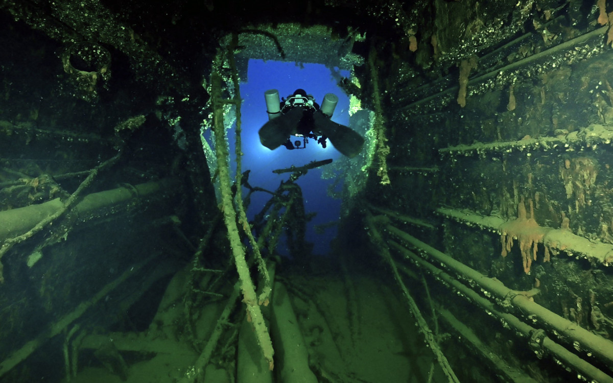 Mergulhadores de águas profundas foram aos destroços do navioAFP