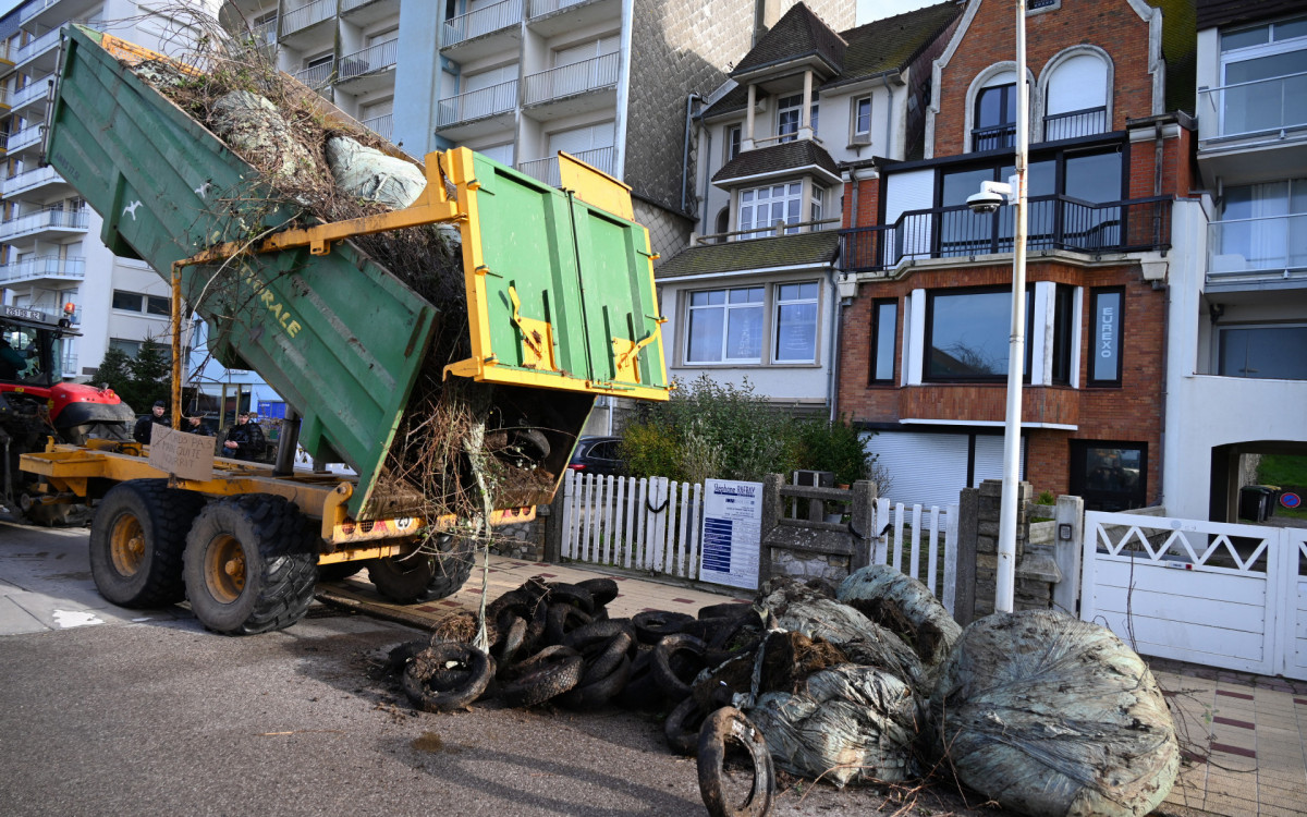 Manifestantes jogaram vários sacos de esterco, pneus, repolhos e galhos AFP