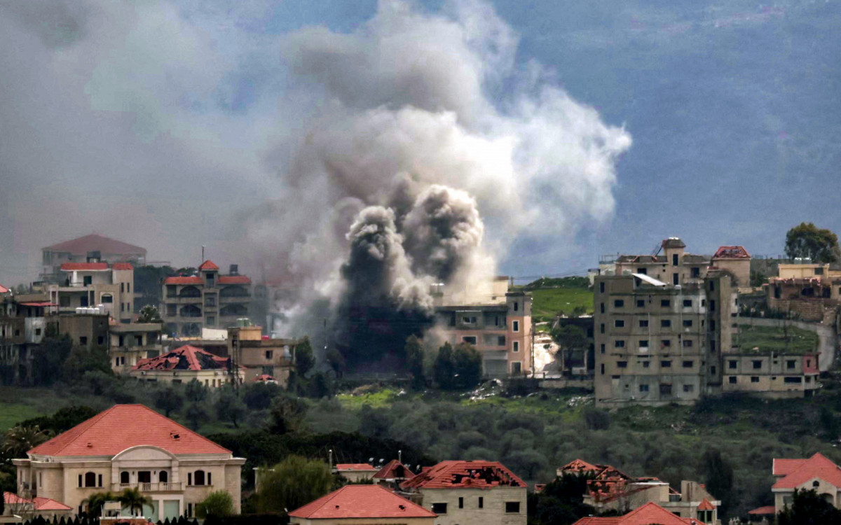 Colunas de fumaça após bombardeio israelense no sul do LíbanoAFP