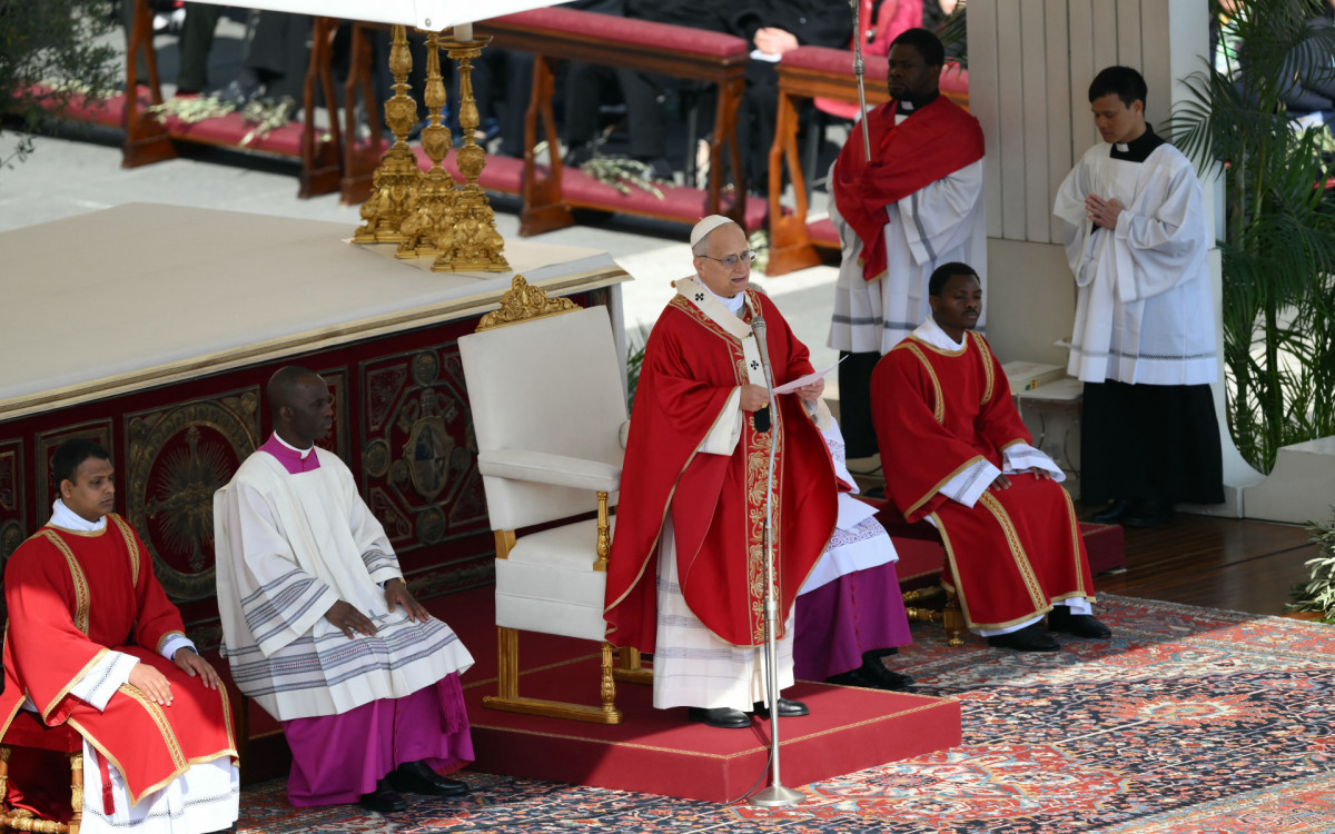 Papa Leão XIV conduz a oração do Ângelus na missa de Domingo de RamosAFP